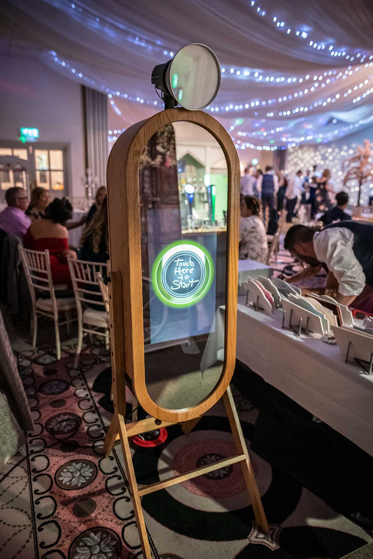 A photobooth Bestpartybooth não vem só, traz também dezenas de acessórios divertidos para personalizar ainda mais as fotografias. Há vários modelos para as fotografias e, tanto os fundos como as cabines podem ser personalizados para dar um toque ainda mais exclusivo à vossa festa. Também dispõem de um fabuloso espelho mágico que encantará os vossos convidados, porque é uma inovação elegante e prática. O mais recente em tecnologia para eventos, o espelho apresenta uma câmara escondida atrás de um espelho ativado por toque, permitindo que o utilizador se veja a si mesmo enquanto tira fotos. Os convidados estão sempre prontos para brilhar em frente ao espelho quando vêem o seu reflexo. Uma experiência personalizada.