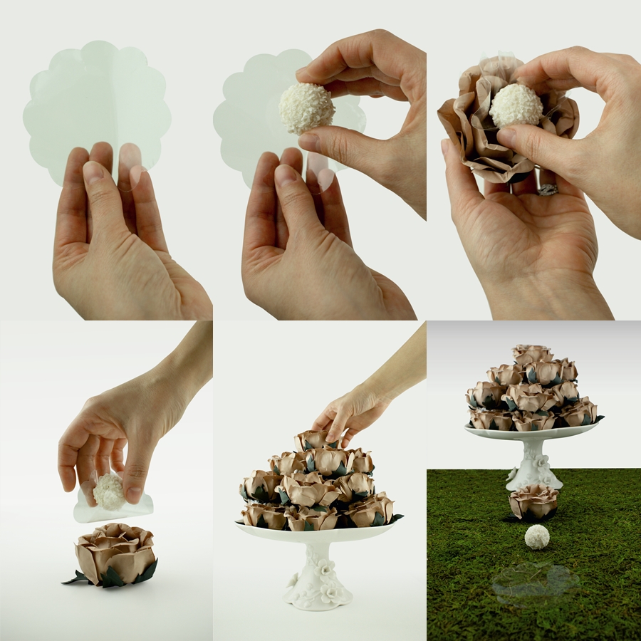 As Forminhas em Flor, em papel ou tecido, são uma especialidade da casa. Estas servem para colocar pequenos doces e para, ao mesmo tempo, decorar e compor mesas de doces, criar arranjos, centros de mesas e argolas de guardanapo ou ainda para ofertar como lembrança personalizada com o seu logotipo, monograma ou mensagem.