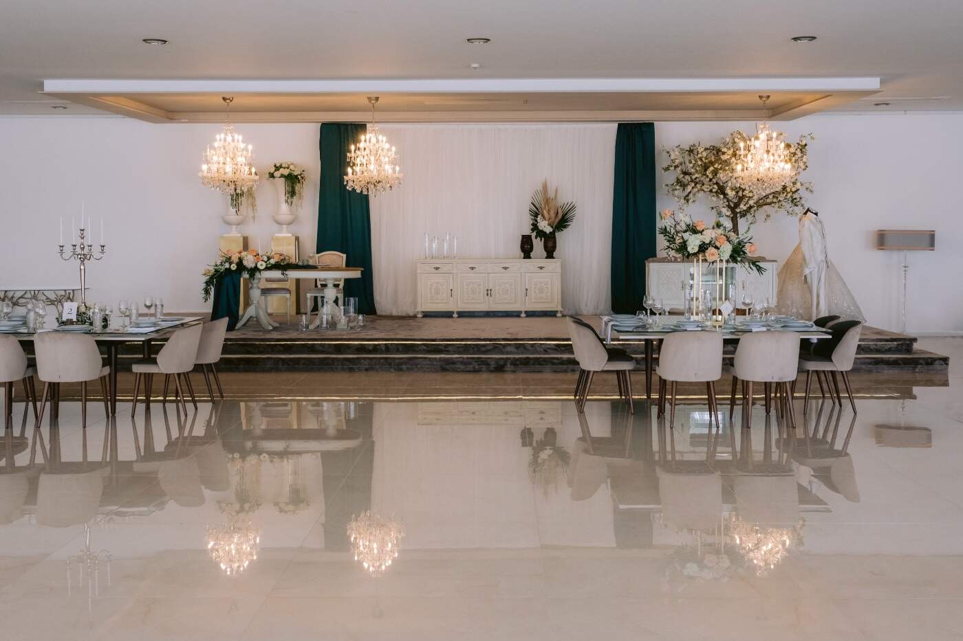 Além da elegância e do requinte, esta Quinta da Granja oferece um cenário único e encantador, com lagos e jardins na sua parte exterior, que culminam em vistas de cortar a respiração, e com um salão nobre com espaço para 400 pessoas e com um ambiente extremamente romântico, no interior, para que a sua boda seja memorável e realmente especial.