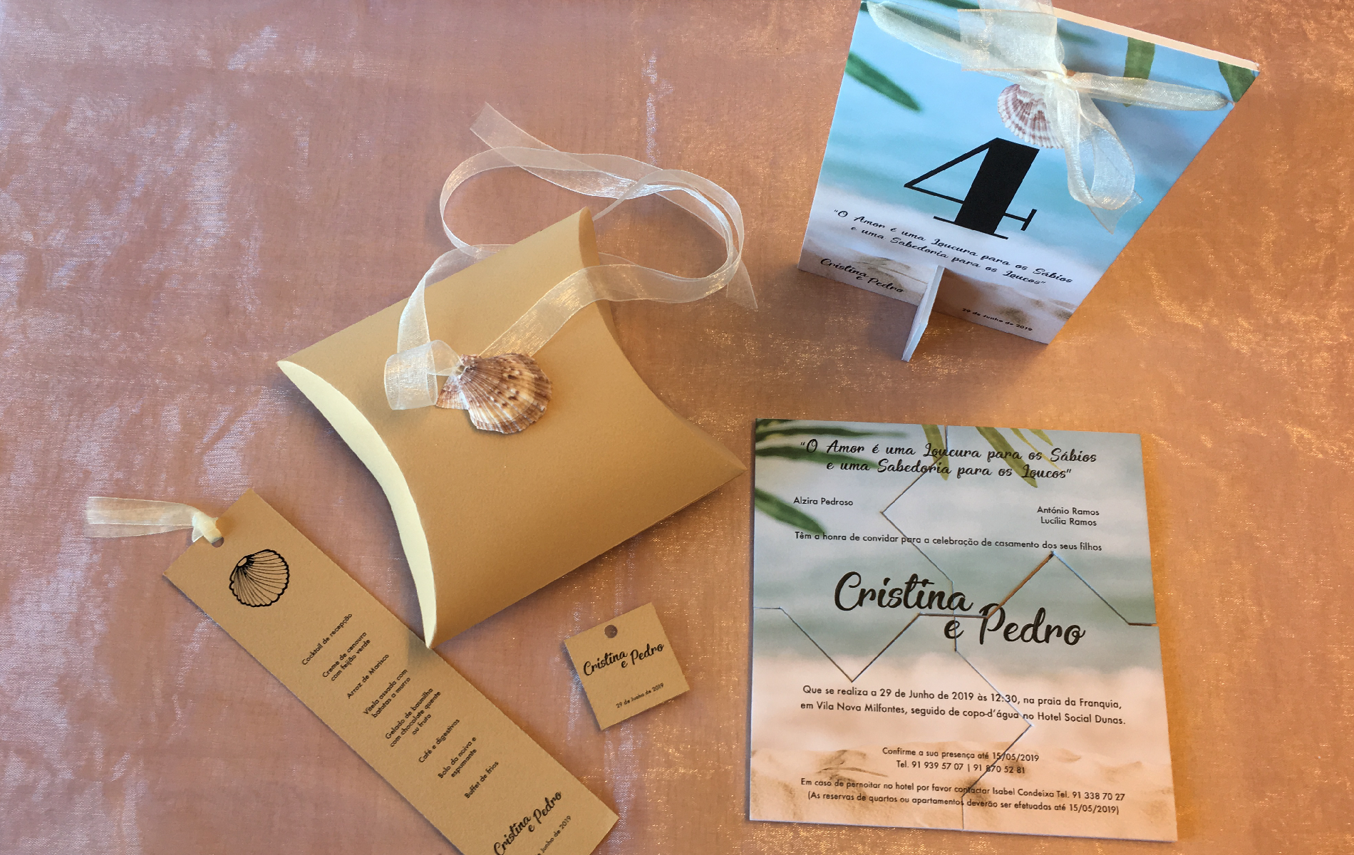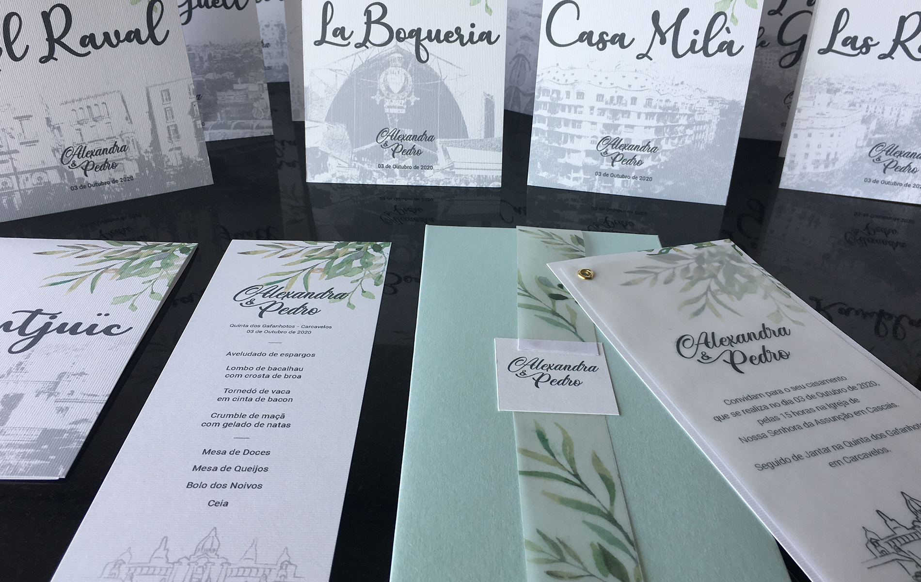 Todos os convites e restantes elementos são personalizados, resultantes da conjugação de diferentes técnicas e materiais.