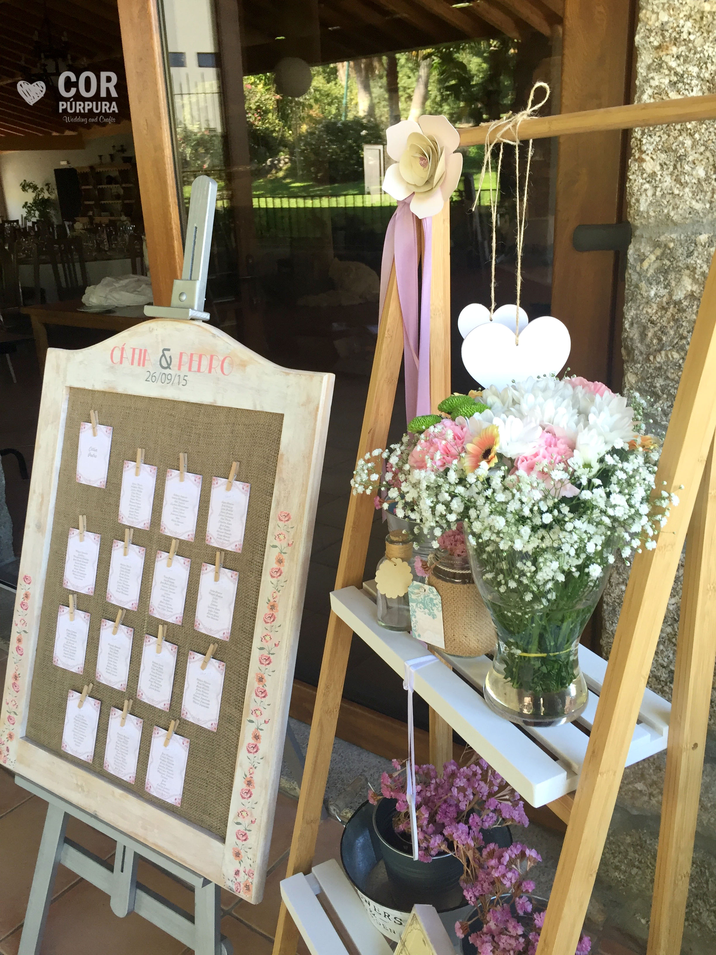 Nos casamentos rústicos a madeira é usualmente a grande protagonista ao nível da decoração, quer em detalhes originais – barris, escadotes, janelas e portas antigas, etc. – quer nas mesas e cadeiras ou móveis de apoio envelhecidos que servem, inclusivamente, para fazer bonitos seating plans ou photocalls, seguindo a tendência do vintage e “desgastado” que tem arrasado nas últimas temporadas, tanto para a decoração de cerimónias, decoração de mesas de casamento ou na decoração de cadeiras.