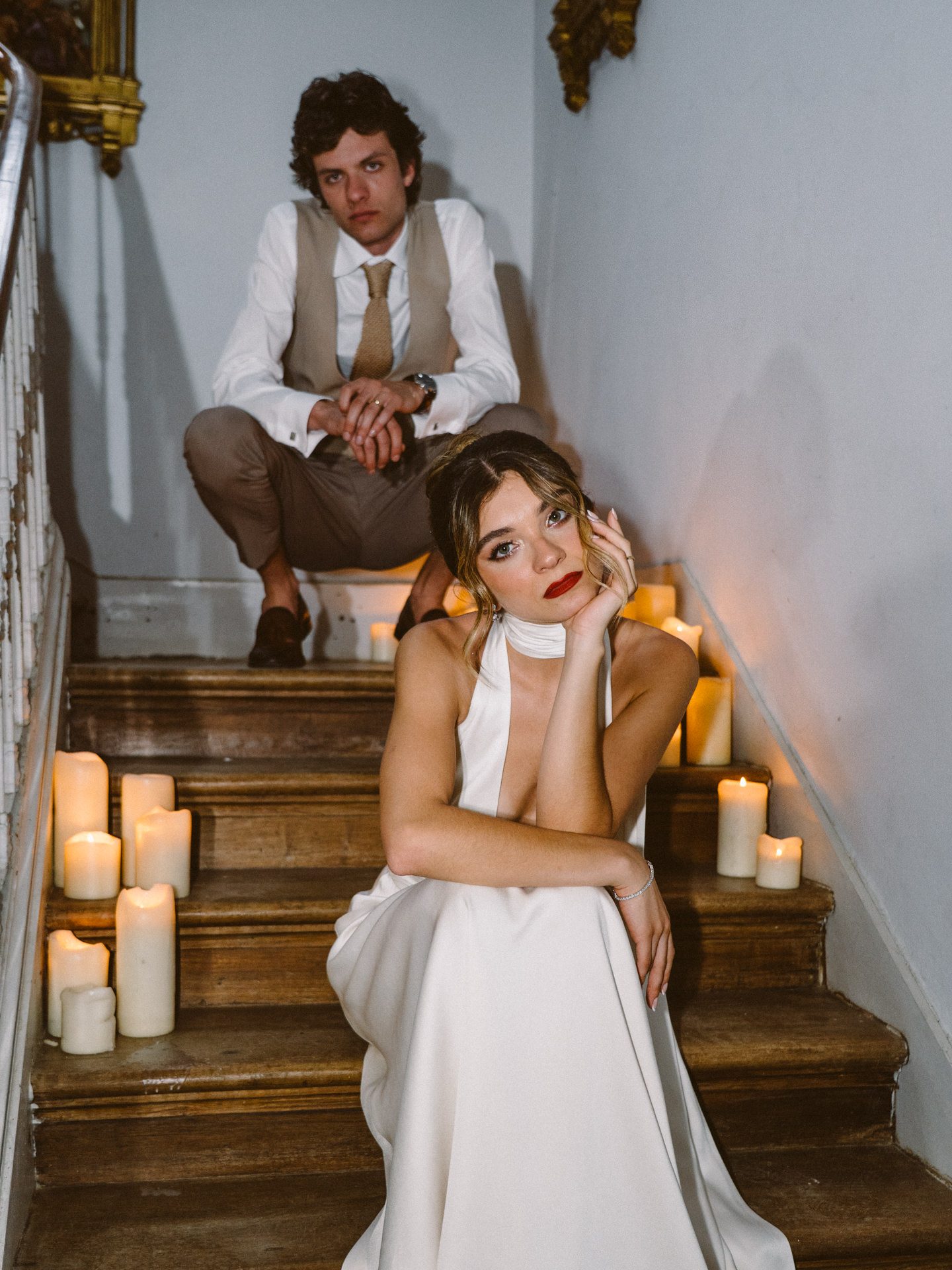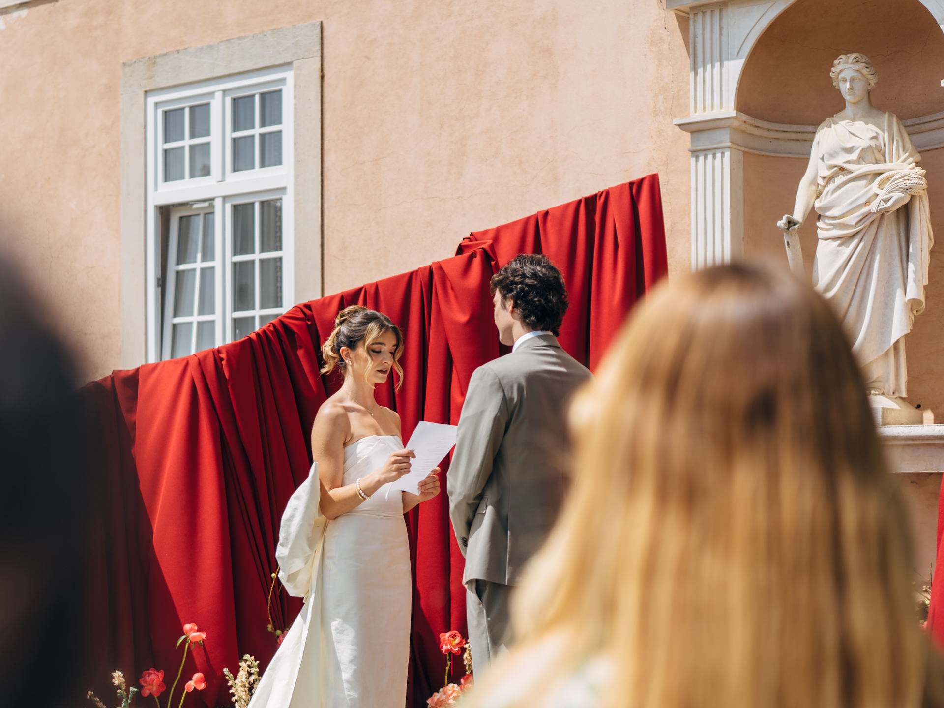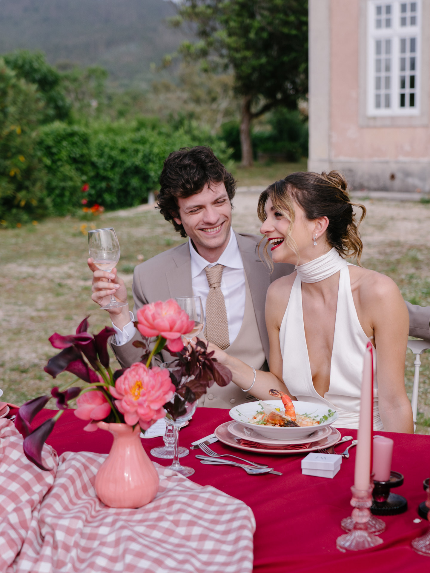 A partir daí, criámos uma história: a Ana, portuguesa, e o Michelangelo, italiano, que se conheceram em Itália e decidiram casar em Portugal. Uma cerimónia íntima, com cerca de 25 convidados, um formato cada vez mais procurado, especialmente em destination weddings.