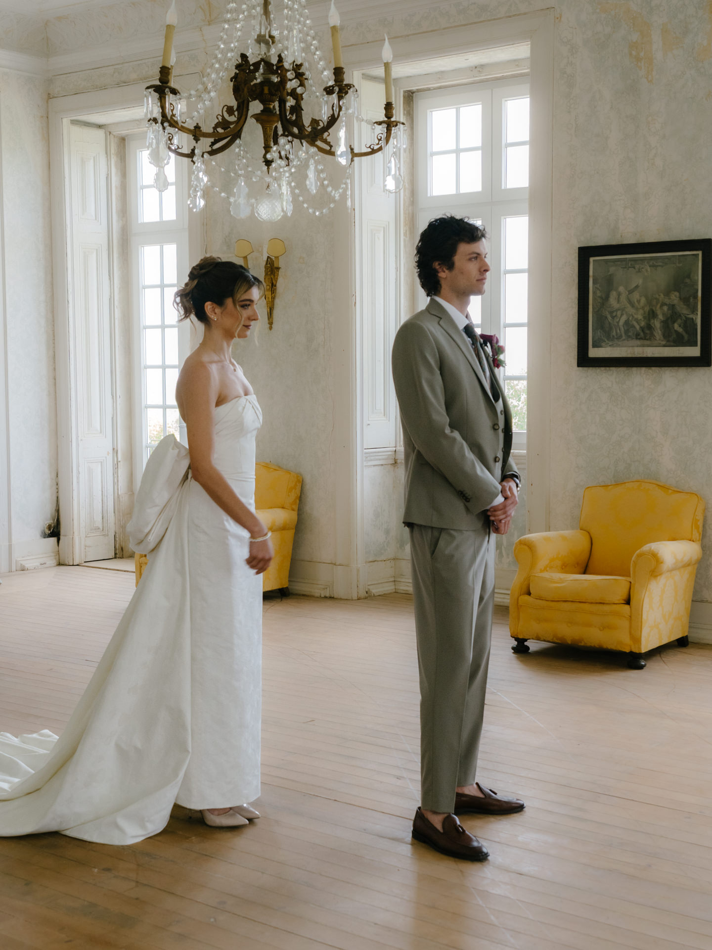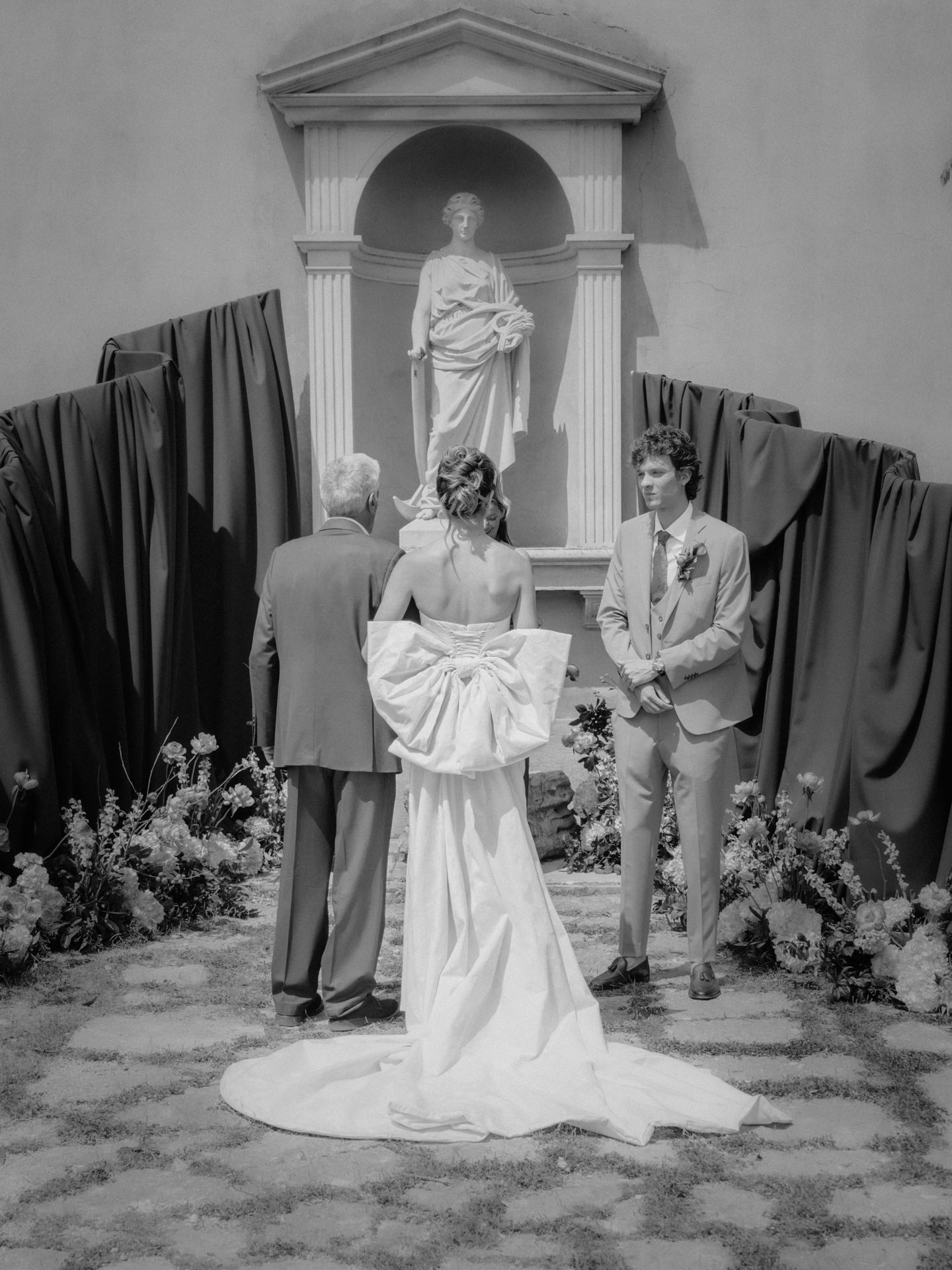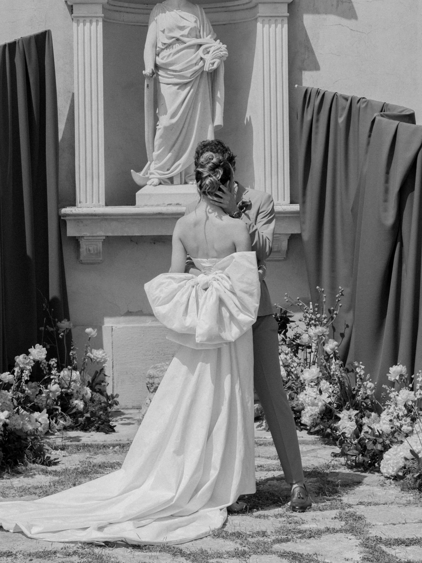 A partir daí, criámos uma história: a Ana, portuguesa, e o Michelangelo, italiano, que se conheceram em Itália e decidiram casar em Portugal. Uma cerimónia íntima, com cerca de 25 convidados, um formato cada vez mais procurado, especialmente em destination weddings.