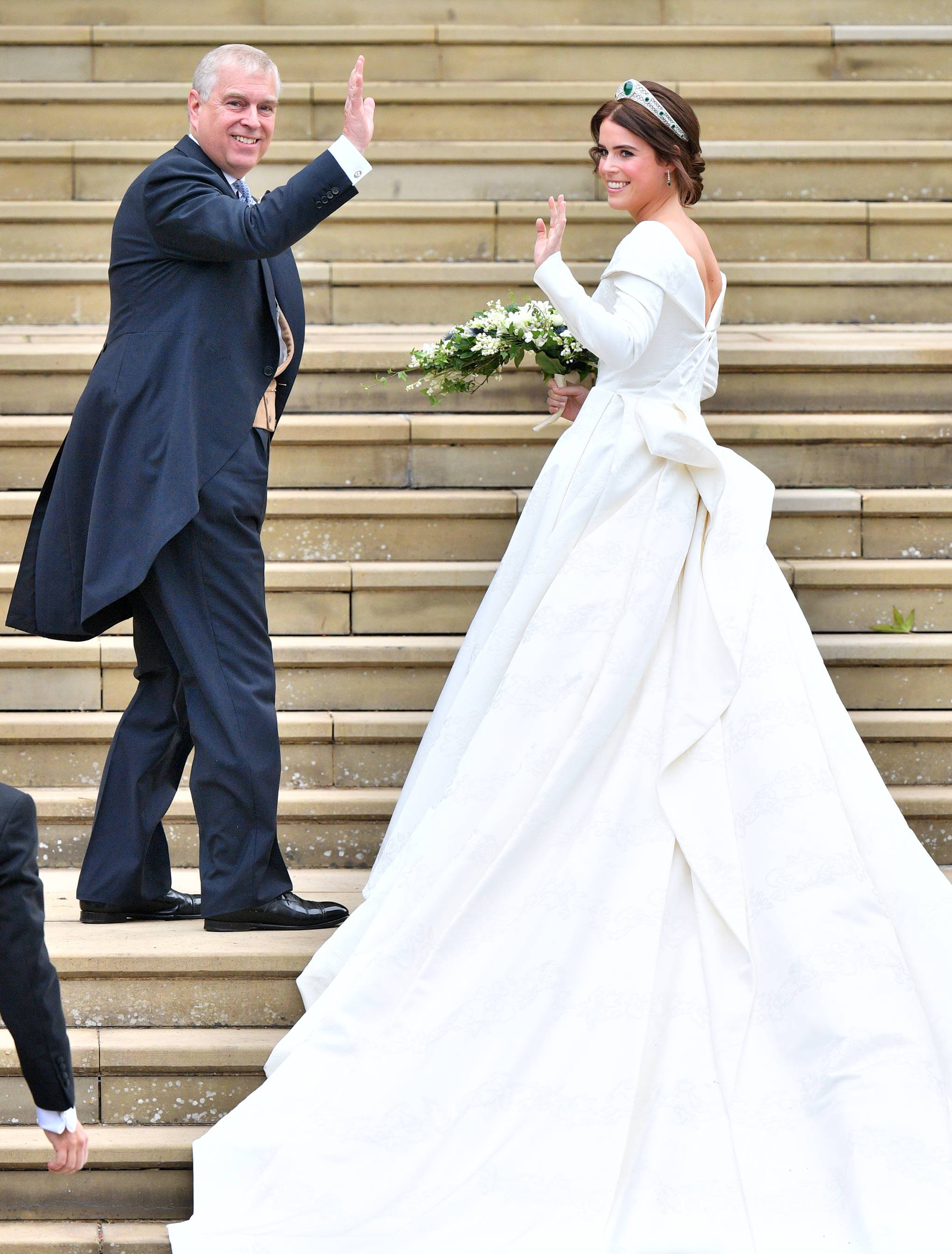 Por seu turno, Eugenie foi levada ao altar pelo pai, o príncipe André, ao contrário de Meghan Markle, que foi conduzida até meio do caminho pelo atual sogro, o Príncipe Carlos, encaminhando-se depois sozinha até junto do noivo.