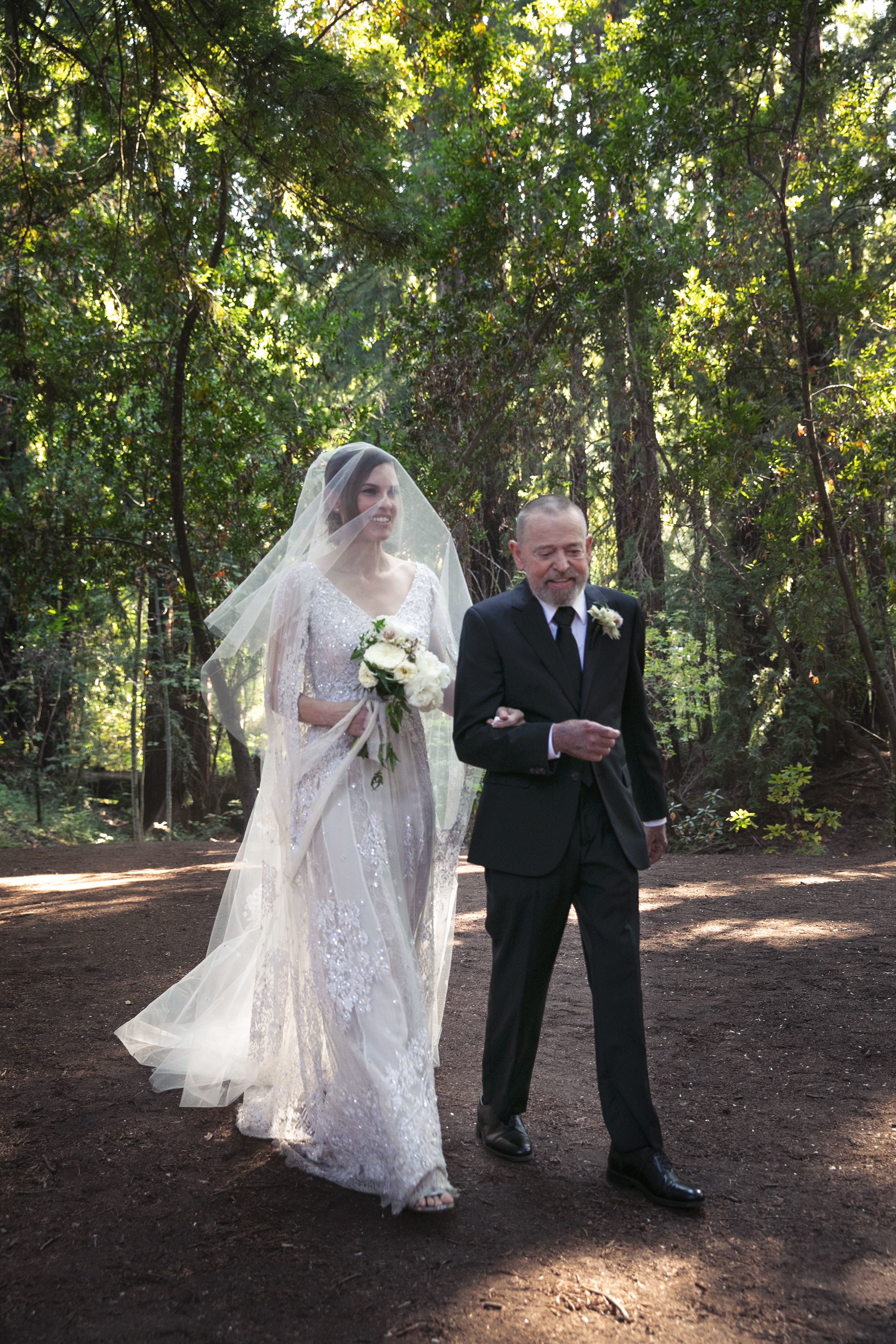 O pai de Hilary levou-a até o altar.